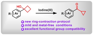 (3) Mild Ring Contractions of Cyclobutanols to Cyclopropyl Ketones via Hypervalent Iodine Oxidation. Yan Sun, Xin Huang, Xiaojin Li, Fan Luo, Lei Zhang, Mengyuan Chen, Shiya Zheng, Bo Peng* Adv. Synth. Catal.2017, 360, 1082.