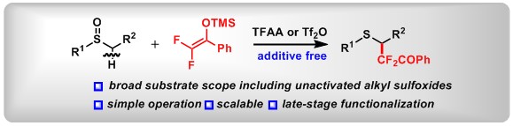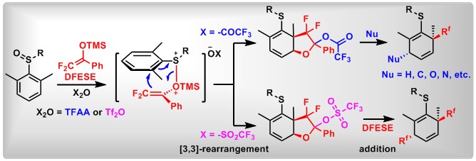 (18) Dearomatization of Aryl Sulfoxides: A Switch between Mono- and Dual-Difluoroalkylation. Xin Huang,+ Yage Zhang,+ Weijian Liang, Qifeng Zhang, Yaling Zhan, Lichun Kong, Bo Peng* Chem. Sci., 2020, 11, 3048.