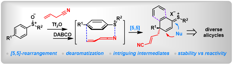 (23) Dearomative di- and trifunctionalization of aryl sulfoxides via [5,5]-rearrangement. Mengjie Hu,+ Yanping Liu,+ Yuchen Liang,+ Taotao Dong, Lichun Kong, Ming Bao, Zhi-Xiang Wang,* Bo Peng* Nat Commun 2022, 13, 4719.