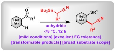 (7) Reductive ortho C-H Cyanoalkylation of Aryl(Heteroaryl) Sulfoxides: A General Approach to α-Aryl(Heteroaryl) Nitriles. Luo, F.; Lu, Y.; Hu, M.; Tian, J.; Zhang, L.;* Bao, W.; Yan, C.; Huang, X.; Wang, Z.-X.;* Peng, B.* Org. Chem. Front., 2018, 5,1756. (inside cover)