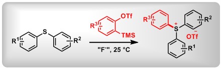(4) Synthesis of o-Aryloxy Triarylsulfonium Salts via Aryne Insertion into Diaryl Sulfoxides. Li, X.; Sun, Y.; Huang, X.; Zhang, L.; Kong, L.; Peng, B.* Org. Lett. 2017, 19, 838.