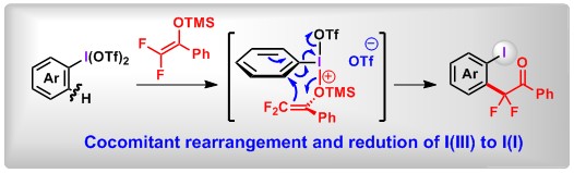 (16) The ortho-Difluoroalkylation of Aryliodanes with Enol Silyl Ethers through a Rearrangement Enabled by a Fluorine Effect. Xin Huang,+ Yage Zhang,+ Chaoshen Zhang,+ Lei Zhang, Ying Xu, Lichun Kong, Zhi-Xiang Wang,* Bo Peng*. Angew. Chem. Int. Ed. 2019, 58, 5956.