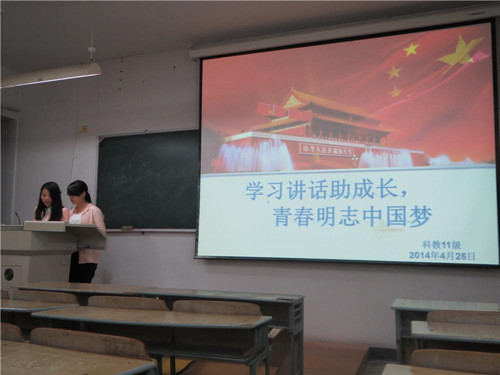 4月25日晚,科教11级团支部组织并开展了以“学习讲话助成长,青春明志中国梦”为主题的团日活动,支部全体成员一起探讨学习《习总书记在五四青年节的讲话》、《习总书记同团中央新一届领导班子成员集体谈话》和《习总书记对北京大学考古文博学院2009级本科团支部全体同学回信》等重要讲话的主要内容。