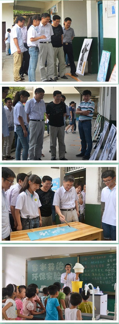 712上午,校党委副书记蒋国俊、校团委书记童卫丰、校党委宣传部副部长刘修敏、校学生处副处长尹浩冰以及校团委副书记王淑娉、魏梦璐等前往兰溪市香溪镇官塘中心小学,与兰溪市领导、金华团市委领导一同看望了我院暑期社会实践队,并参观了实践队在香溪开展的以“五水共治•舞水情”为主题的实践成果展。