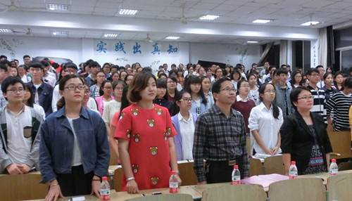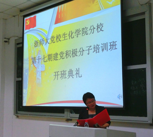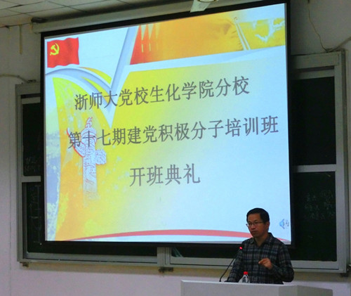 10月18日18点整,浙江师范大学党校生化学院分校第十七期建党积极分子培训班开班典礼于16幢208教室隆重举行。本次开班典礼由院团委书记王志海老师主持,出席典礼的有院党委书记徐建鹏老师、院党委副书记马莉老师、学工办应莹与周颖老师以及205名党校学员。