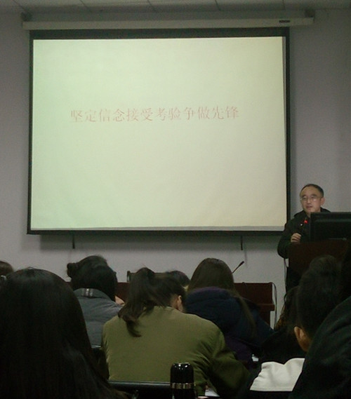 此次授课内容为《坚定信念接受考验争做先锋》,徐亨元老师以小游戏的形式,让三个学院的学员们随机抽取几个写出中国共产党的信仰、理想和信念,然后针对这三个词为学员们进行讲解,指出现阶段中国共产党的信仰是马克思主义,信念是中国特色社会主义道路,理想是实现共产主义并告诉同学们信念和信仰和理想的基础,它们决定了理想的内容。接下来,徐老师通过几个关键词:理想——鞋子合不合脚,只有自己才知道;比较——寻找模样,看看世上 ;做法——讲好中国故事,传播中国声音,形成中国特色,表现中国风格,展现中国气派,实现中国梦想;坚信——中国共产党能够取得中国特色社会主义建设事业的胜利,并结合事例就如何坚定对中国特色社会主义道路的信念展开具体探讨。