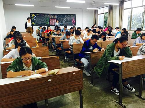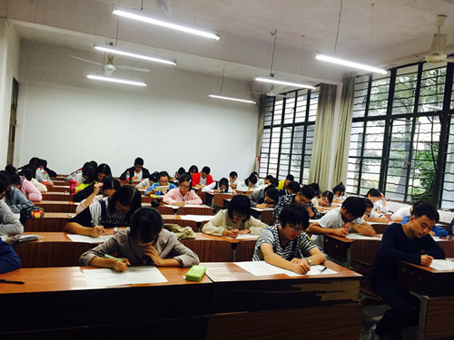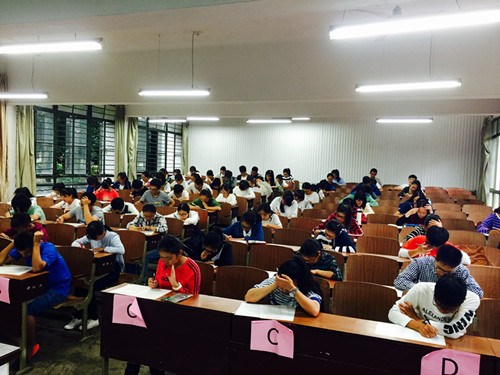 参加考试的大部分为16级新生,同时也有高年级本科生与研究生,共391人报名参加考试。每个考场至少有两名监考人员维持现场秩序。考试过程中,学工办应莹老师以及党员之家主任叶宇城到各个考场巡视严肃考场纪律。