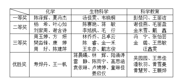 根据化学与生命科学学院《关于举办化学与生命科学学院第十三届“明日之星”教学技能竞赛的通知》文件,经过个人报名,于2019年4月20日举行了初赛,化学、生物科学和科学教育各师范专业分别取前12名进入决赛。5月26日举行了决赛。决赛成绩由两部分组成:即席讲演+模拟上课?板书。经过比赛最终评出各专业一等奖2名,二等奖4名,三等奖6名,优胜奖若干,具体名单如下。