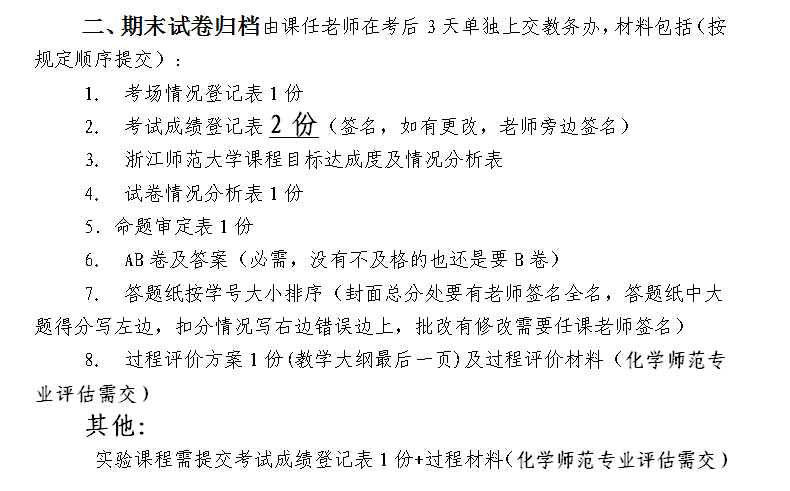 1??.过程评价归档表用于平时材料(作业,实验报告,期中考试等),附于每份材料最上方,捆绑后统一交在专业主任处,专业收齐后按序统一上交7幢4楼评估材料存放处。