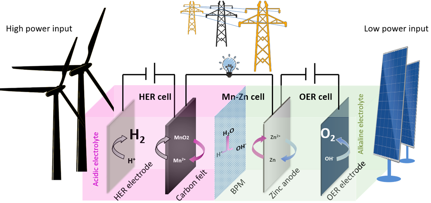 Jianhang Huang, Yihua Xie, Lei Yan, Bingliang Wang, Taoyi Kong, Xiaoli Dong, Yonggang Wang and Yongyao Xia. Decoupled amphoteric water electrolysis and its integration with Mn-Zn battery for flexible utilization of renewables [J]. Energy & Environmental Science, 14 (2021) 883-889.