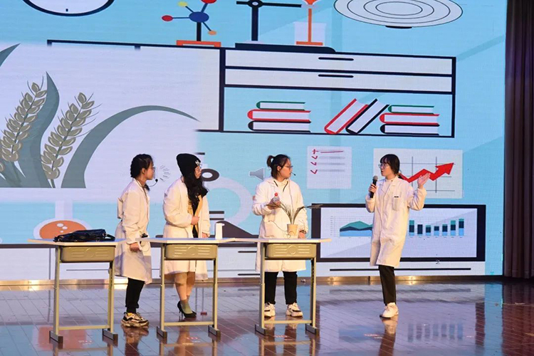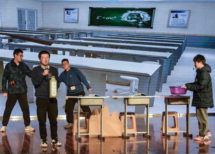 化学与生命科学学院“说的都队”利用时空穿梭的新颖设定,结合流行元素表演了情景剧《超能老人纠错录》。情景剧讲述了一位无意中获得了穿越时空能力的老人,回到当年的事故现场,对实验时发生的一系列错误操作给予相应警示。最终与老人一同做实验的同学纠正错误,避免了燃爆事故的发生。