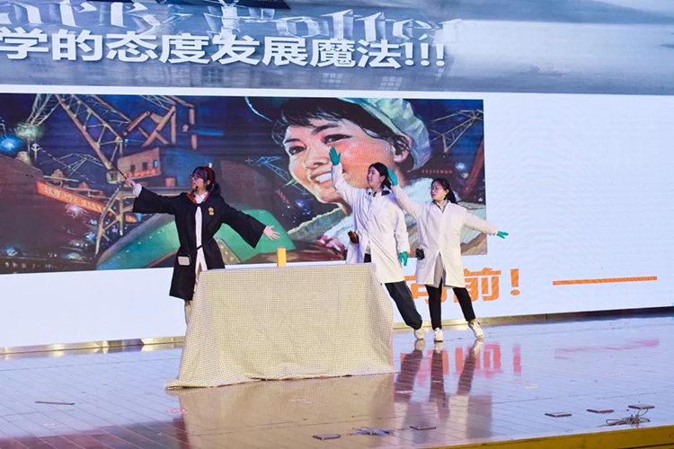 化学与生命科学学院“发际线总和我作队”充分发挥奇思妙想,以魔法学院交换生进入实验室为背景,表演了情景剧《关于我在浙师大成为实验室高手这档事》,他们针对实验室常见危险操作进行生动的讲解。魔法学院交换生认真学习实验安全知识,在经历种种错误后,对实验室安全知识从一窍不通到熟练掌握。情景剧以精彩的“魔法对决”结尾,讲解药品性质、离心和加热等操作要点,点明注重实验室安全的主旨。