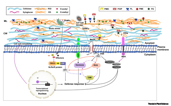 图1.果胶介导的植物免疫机制示意图