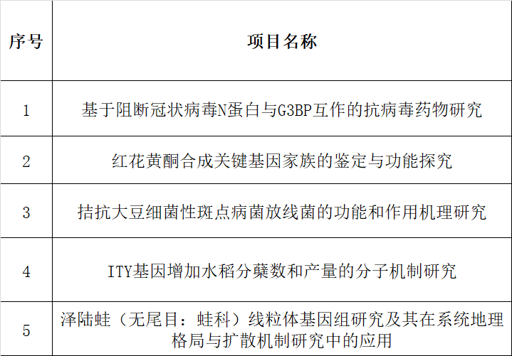 根据学校《关于申报2023年度国家级大学生创新创业训练计划项目的通知》相关要求,经学生申报,专家匿名评审,拟推荐以下5个项目,现予以公示,公示期:2023年5月8日-5月9日16点。如有问题,请反馈:生命学院教务办,联系电话:82282325,82283059。
