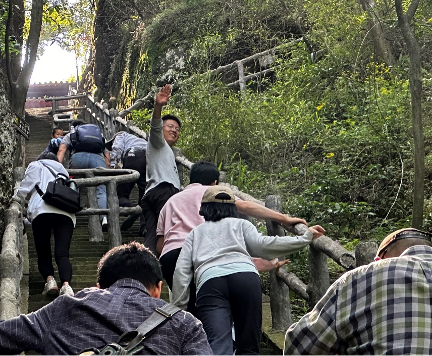 此次活动选在风景秀丽的武义大红岩风景区和仙客岭采摘园。登山途中大家精神抖擞、相互扶持,充分展现出奋力攀登和团结协作的精神。仰望群山碧绿,步入青翠树林,聆听啾啾鸟鸣,一路笑语盈盈。
