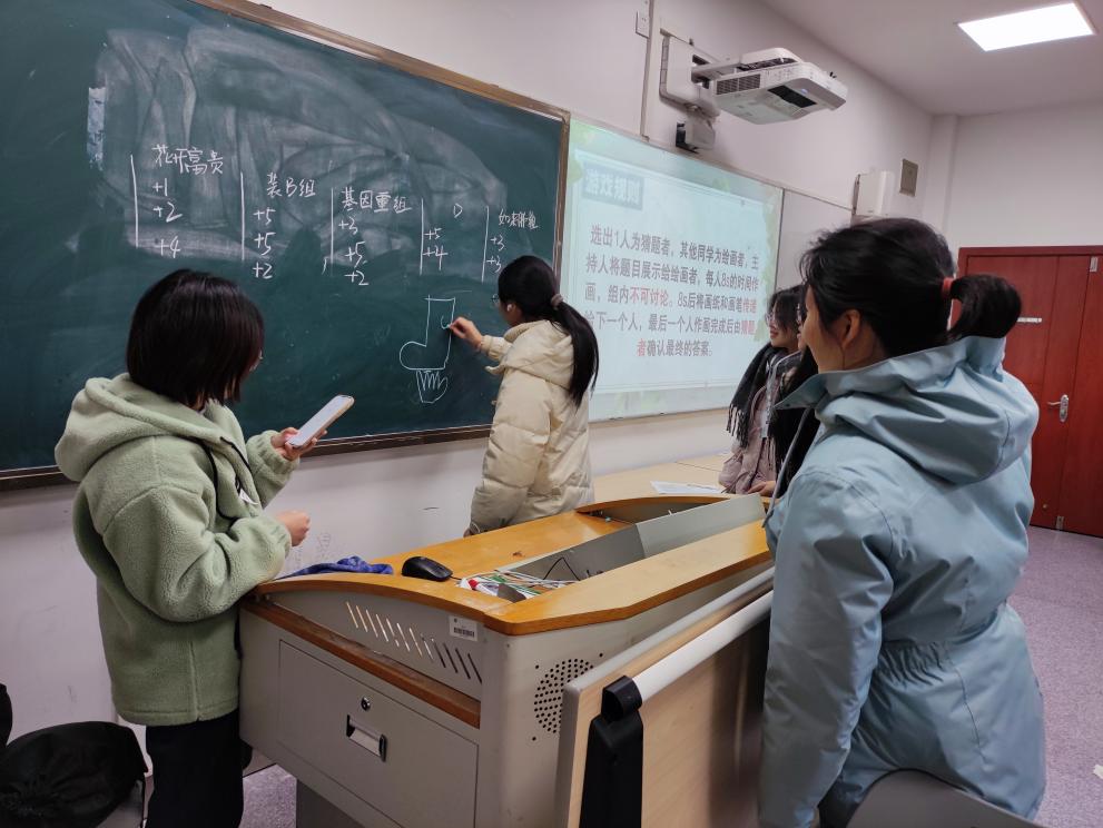 粉笔在黑板上不断勾勒出不同的形状,随着接力的不断进行,简单的线条组成了具象的画面。同学们发挥自己的想象力,动用队友间的“心电感应”,让创意与智慧尽情地碰撞。游戏活跃了现场的气氛,让同学们感到兴奋不已,他们完全沉浸在其中,使自己完全放松身心,活动也由此拉开序幕。