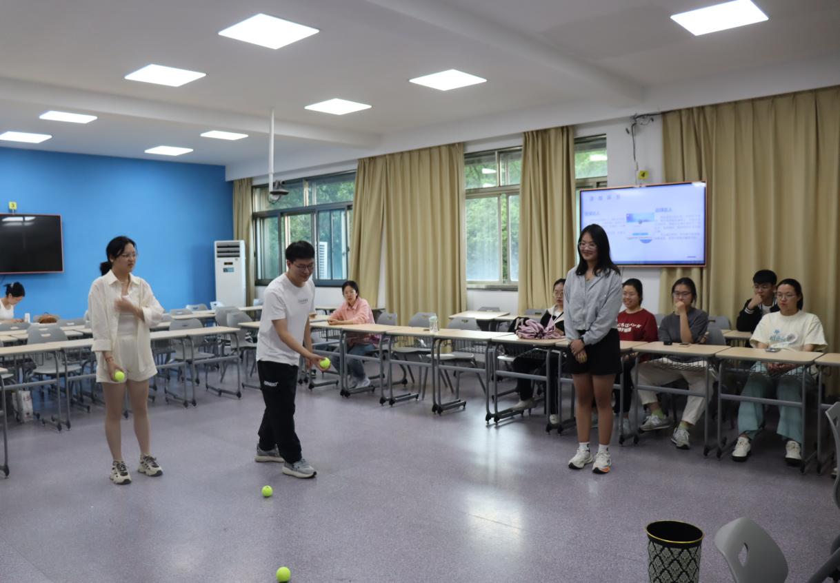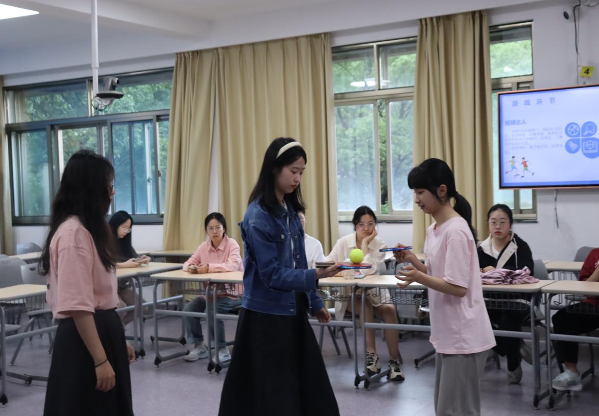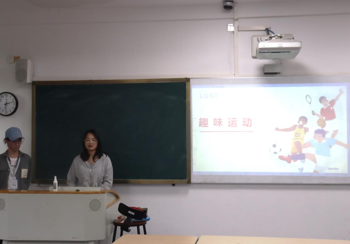 简单而有趣的引入活动结束,张懿简要地介绍了趣味运动——它是将“趣味”融入团队合作中,注重个人奉献与集体协作的智慧创造。随后吴俊贤讲解了许多运动项目,如“跳绳达人”“垫球达人”······这些运动不仅能促进身体健康,更能提升快乐感和幸福感,有助于心理健康。