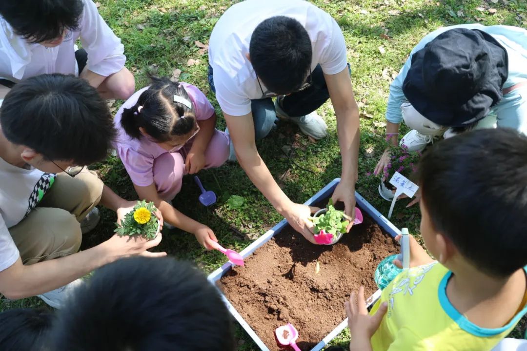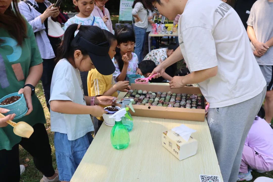 讲解过后,志愿者们耐心地示范和指导,帮助孩子们选择合适的植物种子种类,孩子们专注地动手操作,运用常见植物的种子、多肉植物以及花卉等原材料,轻轻埋入土壤,并包裹好,动手制作属于自己的小盆栽。孩子们用双手感受生命成形的无穷魅力,亲手栽下的小苗,在这个充满温馨和创造力的时刻,小盆栽不仅是植物的生长载体,更成为了孩子们情感传递和体验生命美好的桥梁。