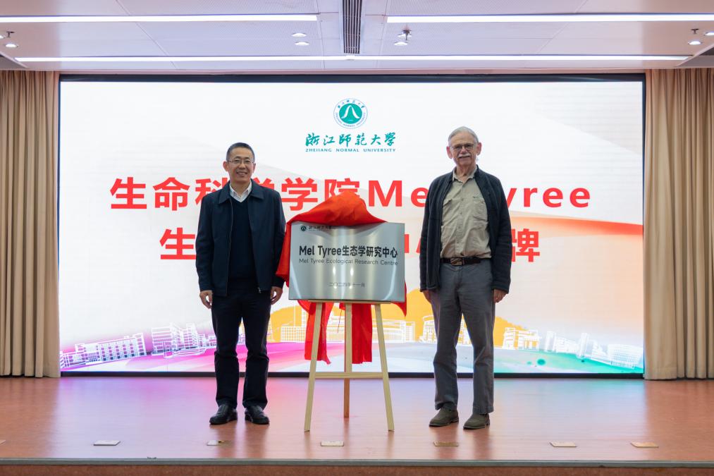 为了感谢Tyree教授长期以来对学校生态学领域的支持,生命科学学院成立Mel Tyree 生态学研究中心,生命科学学院院长孙梅好教授和Tyree教授共同为中心揭牌。