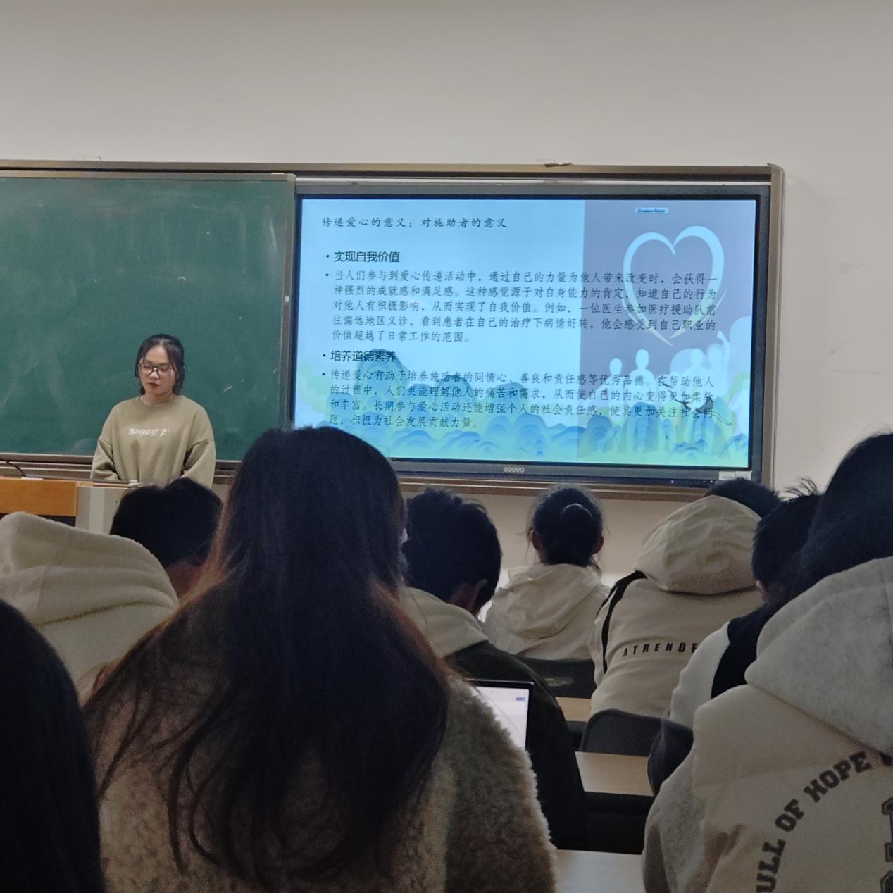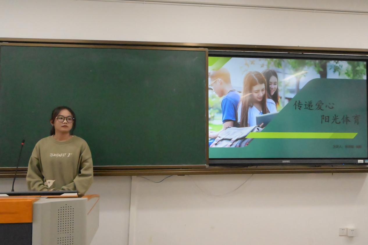活动伊始,张懿从“传递爱心的意义”、“阳光体育活动的意义”、“爱心体育活动”,三个方面来具体阐释主题,每一部分都引导同学们积极思考。