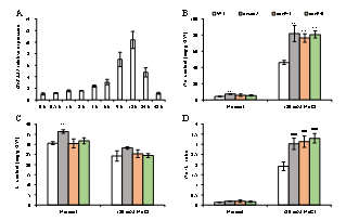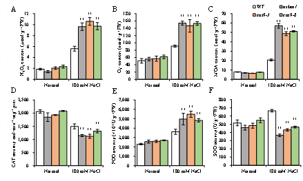进一步的ROS含量和酶活测定显示,oskea1功能丧失突变体在盐胁迫下的ROS含量积累,ROS清除酶活性紊乱。